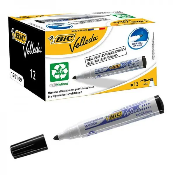 Pack de 12 MARQUEUR BIC VELLEDA effaçable à sec pour tableau blanc